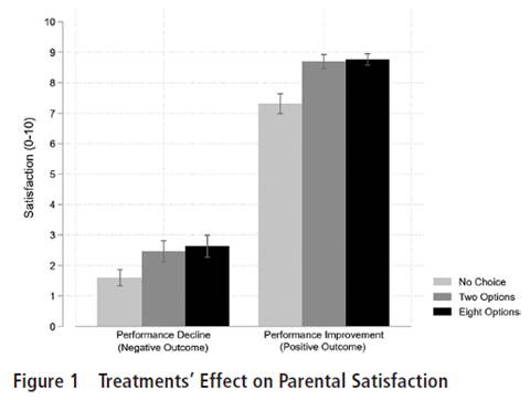 Abstract: Recent years have seen an increase in choice of provider in many public services, including education. Proponents of provider choice suggest that it increases users’ satisfaction. However, insights from the psychology of choice overload suggest that too much choice can be detrimental. The authors use a survey experiment to investigate the effect of provider choice on parents’ satisfaction with schools (under performance declines and increases). The findings show that choice increases satisfaction and perceptions of fairness of the process compared with no choice. However, consistent with choice overload, increasing the number of options does not boost satisfaction. The findings have important implications for satisfaction as a measure of performance, because user satisfaction seems not to be independent of choice processes. This suggests lessons for designing delivery systems: although facilitating minimal user choice is preferable to having no choice, further increasing delivery options may not increase users’ satisfaction.